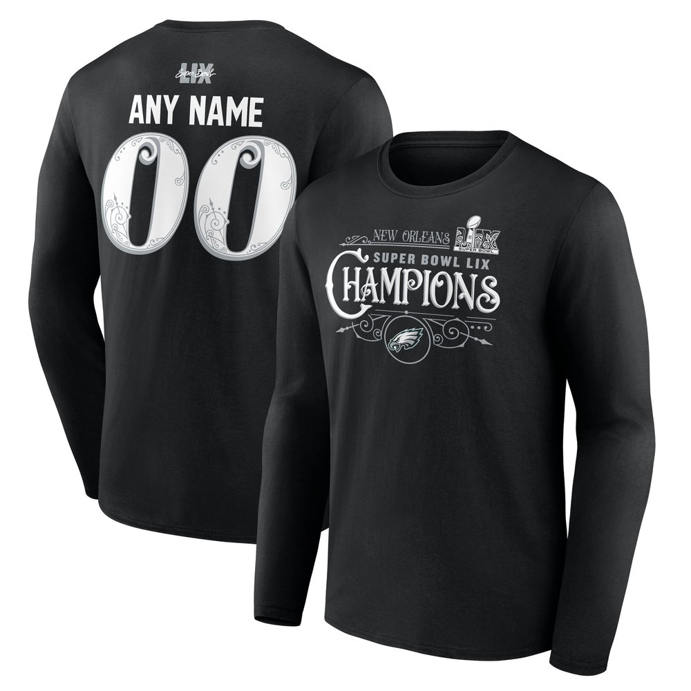 Men's Philadelphia Eagles Black Super Bowl LIX Champions Custom Name & Number Long Sleeve T-Shirt